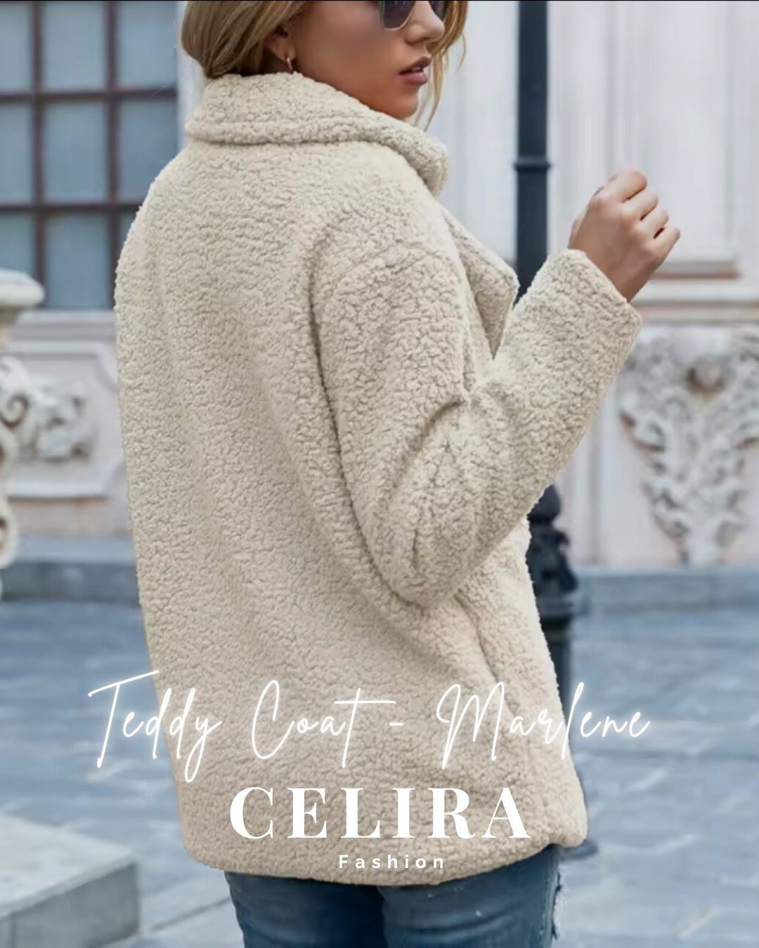 מעיל טדי מרלין מביא שילוב מנצח של חמימות, נוחות ואלגנטיות. עם בד רך ומלטף וגזרה מחמיאה, הוא הבחירה האולטימטיבית ללוק חורפי יוקרתי ומלא נוכחות.